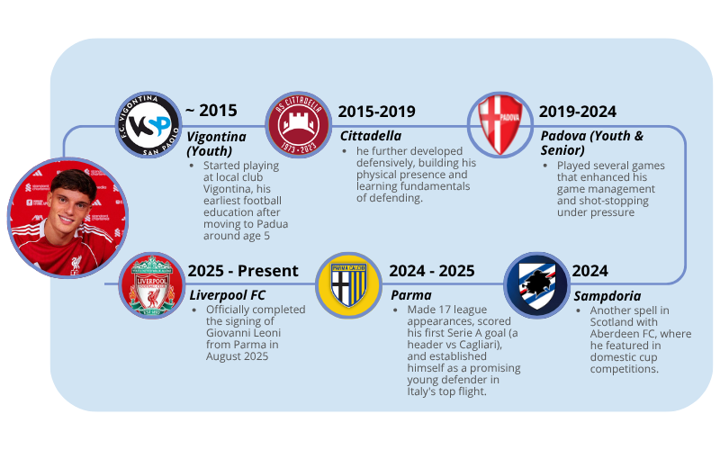Leoni’s journey to Anfield has been a story of hard work and quiet determination. Coming through Parma’s youth academy, he developed a reputation for his strong positional play and ability to read the game. Unlike many young defenders who rely heavily on physicality, Leoni’s intelligence and timing stood out.