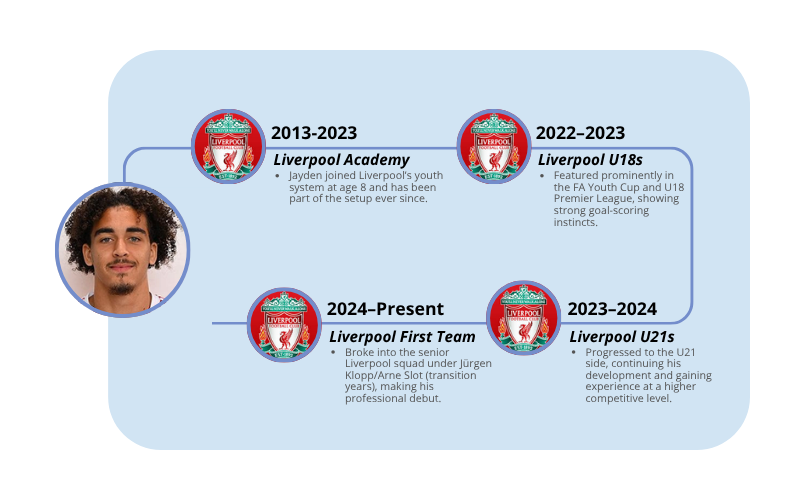 Jayden Danns was born on 16 January 2006 in Liverpool, England. He is the son of former professional footballer Neil Danns. He joined Liverpool’s Academy at age eight and progressed through the youth age groups. While playing at the U16 level, he dealt with a disease, which briefly affected his development.