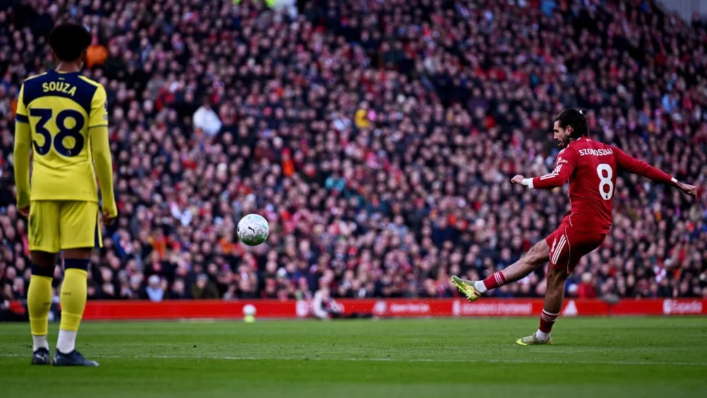 While his work rate and consistency are impressive, Szoboszlai also brings moments of quality that can change games. In March, he found the net twice, and both goals carried significance. One of the standout moments came at Anfield against Tottenham Hotspur, where he scored directly from a free-kick. It was his fourth direct free-kick goal in the Premier League this season, setting a new club record for a single campaign.